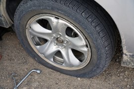 OMG! After a week of driving of gravel roads we finally get our first flat tire on the ONE section of unpaved road. UGH!