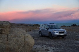 According to Google Maps, the only destinations on this gravel road were a few estancias (ranches). Many of them do have lodging, but from our research, the prices are astronomical (like, over USD$400 per night) – waaaaay out of the price range for our road trip, and certainly not the kind of last minute expense we wanted to pay on top of getting the tire replaced. On the bright side, we figured no one would have any reason to drive down this road in the middle of the night, so once we were out of sight of the highway, we could probably park anywhere off the road and not need to worry about privacy. Well, we were mostly right. A farm truck passed us twice as we crawled along toward the lake – once as he was dropping someone off at the highway, and again on his return to his estancia. Each time he passed us, he gave us a scowl as if to say, “What the fuck are you doing on my driveway?” Hopefully he would dismiss us as stupid lost tourists and wouldn’t return in the middle of the night to murder us.
