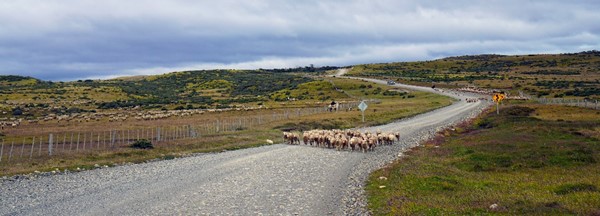 As we drive further south, we run into a pair of gauchos herding their sheep down the road