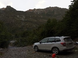 Despite all this, there were surprisingly a lot of people in the park! It was already quite late by the time we were searching for a camp site, but we kept passing cars driving in the opposite direction (odd, considering this is technically a dead-end road – what attraction are all these tourists coming from so late in the day?) and it seemed that every shoulder on the side of the road already had someone parked in it! We spotted a sign for an estancia around 9PM that advertised that it had camping available, so we opened their 3 gates and drove all the way down to the farm house. Perhaps the owner was simply annoyed that we were driving up so late in the night, but when we asked if we could camp on their property we were told they were “full.” Not for nuthin’, but there were plenty of spots on their land where we could have flattybouched. But after taking a look around, we decided we didn’t want to stay there anyways – it was kinda crowded and the outhouse looked pretty gross – at least in the wilderness we can just pee in the open with fresh air!