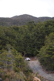 Since we no longer had a permit to cross into Argentina, our only option was to the southernmost section of Chile. We’ve already visited Torres del Paine National Park on a separate vacation 3 years ago, so we opted to explore unchartered territory and drive to the end of the road in the big island of Tierra del Fuego. The eastern half of the island belongs to Argentina (which we visited when we stopped in Ushuaia last month on the cruise), but the western half is in Chile and goes through some very remote country. Since we would have to cover a good 600KM after the last gas station, Luis from the Casa Escondida B&B lent us a second gas canister so we could carry 20L of spare fuel. After that, we drove off into the wilderness, heading for the end of the road (according to Google Maps) at Lake Cami on the edge of Karukinka Park. Supposedly, the Chilean Army is working on a new road which would lead through the forest all the way to the Beagle Channel – we decided to see how far we could go!