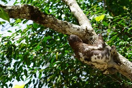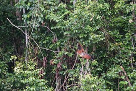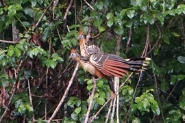 A pair of Hoatzin, AKA “Stinkbirds” – these jungle turkeys are herbivores that ruminate their food like a cow – the fermenting food sits in their crop and produces a bad odor. They are not endangered as apparently they also taste pretty bad and the locals do not hunt them