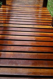 Carefully walking across the slippery, lacquered wood planks to get back to our room
