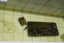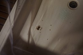 So Lindsay noticed a cockroach in our shower, stuck on its back this afternoon. Rather than help the poor guy up, she left him struggling on his back and left for her excursion through the forest. Imagine her horror when she returns to her “dorm” in the evening and discovers that the unfortunate bug has been EATTEN ALIVE by a swam of ants!