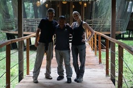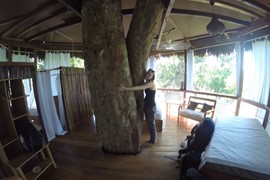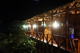 Long walk down the boardwalk, up the stairs, and across the suspension bridge to get to our treehouse room. We will definitely NOT be able to hear anyone poop in this lodge!
