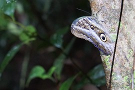 An Owl Butterfly, and the rock-hard shell of a Brazil Nut pod