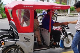 Grabbing a USD $15 moto-rickshaw to the Manatee Rescue Center outside of town