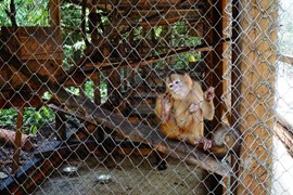 A baby Ocelot and a forlorn Capuchin Monkey