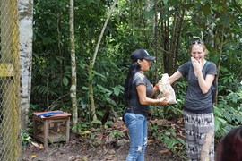 Iquitos is not connected to the rest of Peru via paved road – if we want to drive to Lima you actually have to drive through Brazil! As such, there is not much demand for full-sized cars, as most people only shuttle around town, so the streets are full of motorcycle rickshaws instead. We catch one to the rescue center – a good 20min drive to the outskirts of town. Bring sunglasses – the dust was fierce.