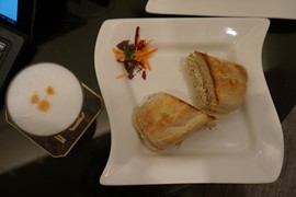 Lounge #2 – Cusco, Landside. Chicken salad sandwich and a pisco sour – now THIS is VIP service!