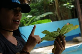 Kelly shows us some river plants that manatees love to eat – these animals are strictly vegetarian and are very helpful in keeping waterways free from overgrowth. The orphan babies in the rescue center are fed cow’s milk via bottles at first, but part of their “recovery” mission is to wean them onto eating plants