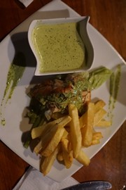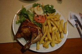 The hotel was no frills: no AC, and close to the airport in the Bellavista neighborhood of Lima. Reviews online claimed it was a rough neighborhood, but it didn’t look to bad to us. However, it’s not like there were any attractions to tempt us to walk around outside anyways. After check-in, the manager told us they would call us to come down when dinner was ready. The hotel had a restaurant area, so we assumed they were preparing something for us. When we sat down at a table, however, we saw a delivery guy bring a large brown bag to the back of the bar. A few seconds later, two large plates with roasted chicken and French Fries came out – they actually ordered take-out for us! The serving sizes were HUGE, so we were more than pleased. Thanks Peruvian Airlines – ya did good.