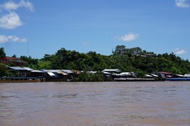 Leaving the town of Iquitos behind as we head toward the confluence of the Amazon River