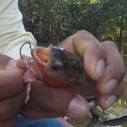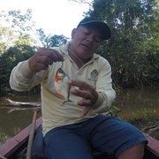 Our guide manages to catch a piranha – look at those teeth!
