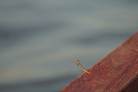 Golden Hour on the river – we find a Praying Mantis stowaway on our boat