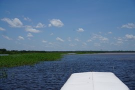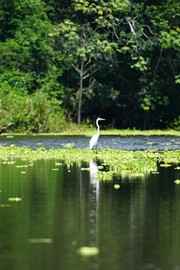 Vast, open wetlands in the Amazon – a Giant White Heron in the distance