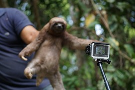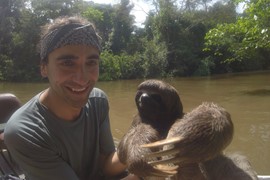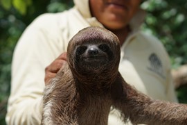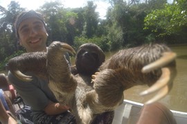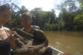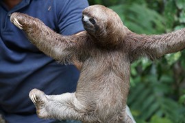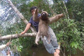 OMG, look at that face! Igor is so excited to be holding a wild, baby sloth!