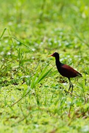 A Jacana (Jesus-bird) seems to walk on water – actually walking on the thick vegetation floating on the water