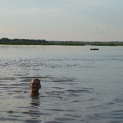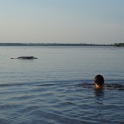 Igor jumps into the water and chases the Pink Dolphins – our guide has to paddle after him!