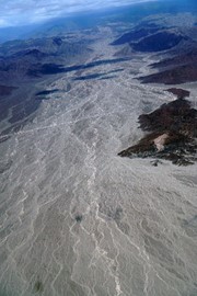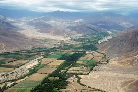Dried up floodplains run out of the fertile valley