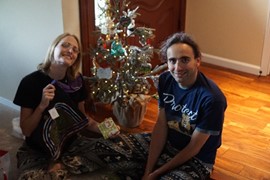 When we finally woke up at my mom & Bo’s house, we had a chance to catch up and exchange gifts. Lindsay and Igor brought a warehouse of clothes back from Peru (there may be a few duplicates, please don’t be insulted, guys). While Lindsay would have LOVED to buy a Christmas ornament in each country we visited, it soon became clear that we had neither the money nor space. As an alternative, mom has spent the last 10 months putting together a GORGEOUS collection of ornaments representing the places we’ve visited! Lindsay was ready to grab that little tree and run back to New York with it, she loved it so much! Thank you, Mommy!
