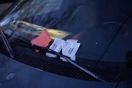 Driving to downtown Sacramento for dinner. A car parked near Fremont park has quite a collection of tickets!