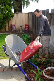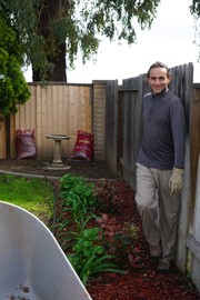 Lindsay & Igor helping her Papito with yard work