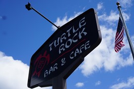 On a local recommendation, we stop at the Turtle Rock Bar for supposed “best eggrolls in California”