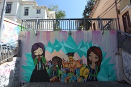 Valpariso, the port city two hours outside the capital where the cruise embarks, is a cool, artsy place that is definitely worth coming in a day early for. It reminds me of San Francisco: cold & foggy in the morning; steep hills with great vistas of the bay (you can take a hair-raising funicular ride to a viewpoint); and lots of colorful street art (AKA graffiti) that can be really pretty.