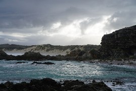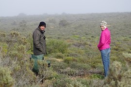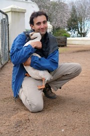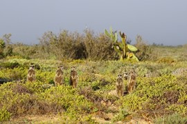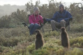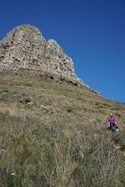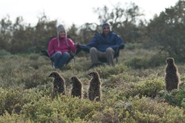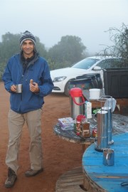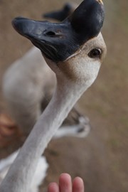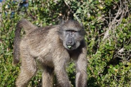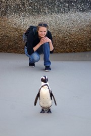 We got up early on our last day in South Africa to see the Mabalingwe lions. We were hoping for the best – after all, we enjoyed the Otjitotongwe Cheetah Farm in Namibia, where they had to keep their “wild” cats in a 200+ acre enclosure. If that was what we expected, we were sorely disappointed with the set-up at Mabalingwe. Both the lions and two Spotted Hyenas were kept in tiny fenced-in enclosures – the one for the lions was probably 5 acres, while the one for the hyenas was about half the size. Honestly, we didn’t come all the way to Africa to visit a zoo – we came to see animals in the WILD! Or at least free-roaming.