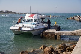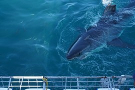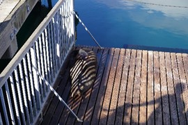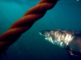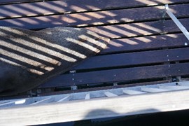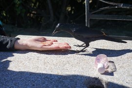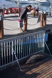 Since the meat is chained to the pole, the lion is forced to eat his meal in front of the viewing platform, for the amusement of the hundreds of tourists who are snapping pictures.