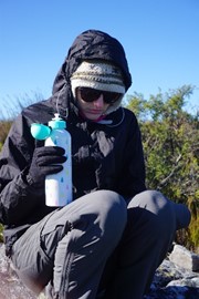 That’s what *you* think. We quickly ducked into a hallway and unraveled our bag, then manually re-wrapped the cellophane around just the bottom half of the bag, so the top was still accessible. Ghetto? Yes. Flight-ready? You bet! We got into the security line – one agent tried get Lindsay to put the backpack in their carry-on size checker but when she threatened to cry, a second agent waved us through. After another hour at Immigration we were finally in the Executive Lounge, where we raised a glass (actually several) to our successful navigation and escape from the Johannesburg Airport. Next stop: EAST AFRICA.