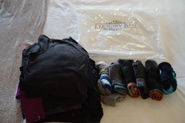 Wrapping (then -wrapping) our ripped bag before our international flight to Kenya
