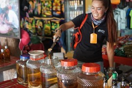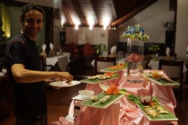 Our flight back to Bangkok was short and easy, but as it was scheduled for the middle of the day, it limited our ability to do any sightseeing. Instead, we made plans to meet up with Pim – a former Best Cellars colleague of Lindsay’s – and have a little dinner party in our hotel suite! Even though traffic from the airport was practically gridlock, we had just enough time to run to the tailor for Igor’s final suit fitting and pick up some groceries before 7PM. We spent the rest of the evening catching up on the last *seven* years since we had seen Pim, and getting an insider’s introduction to the world of Muey Thai kickboxing.