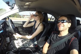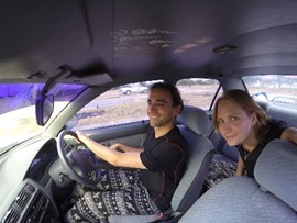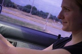 Our instructor was a “tiger-lady” teacher – she kept screaming at Igor in broken English, “Put clutch down ALL the way! You stall car! Put in first gear! You stall car again!” Basically, she showed Igor how to shift, drove around the course once, then switched seats and made him do it. After riding with us for about 15min, she gets out of the car, saying, “I go teach someone else now. You practice. Don’t drive too fast.”