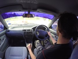 Driving around an obstacle course for about 4 hours, learning how to drive a stick shift